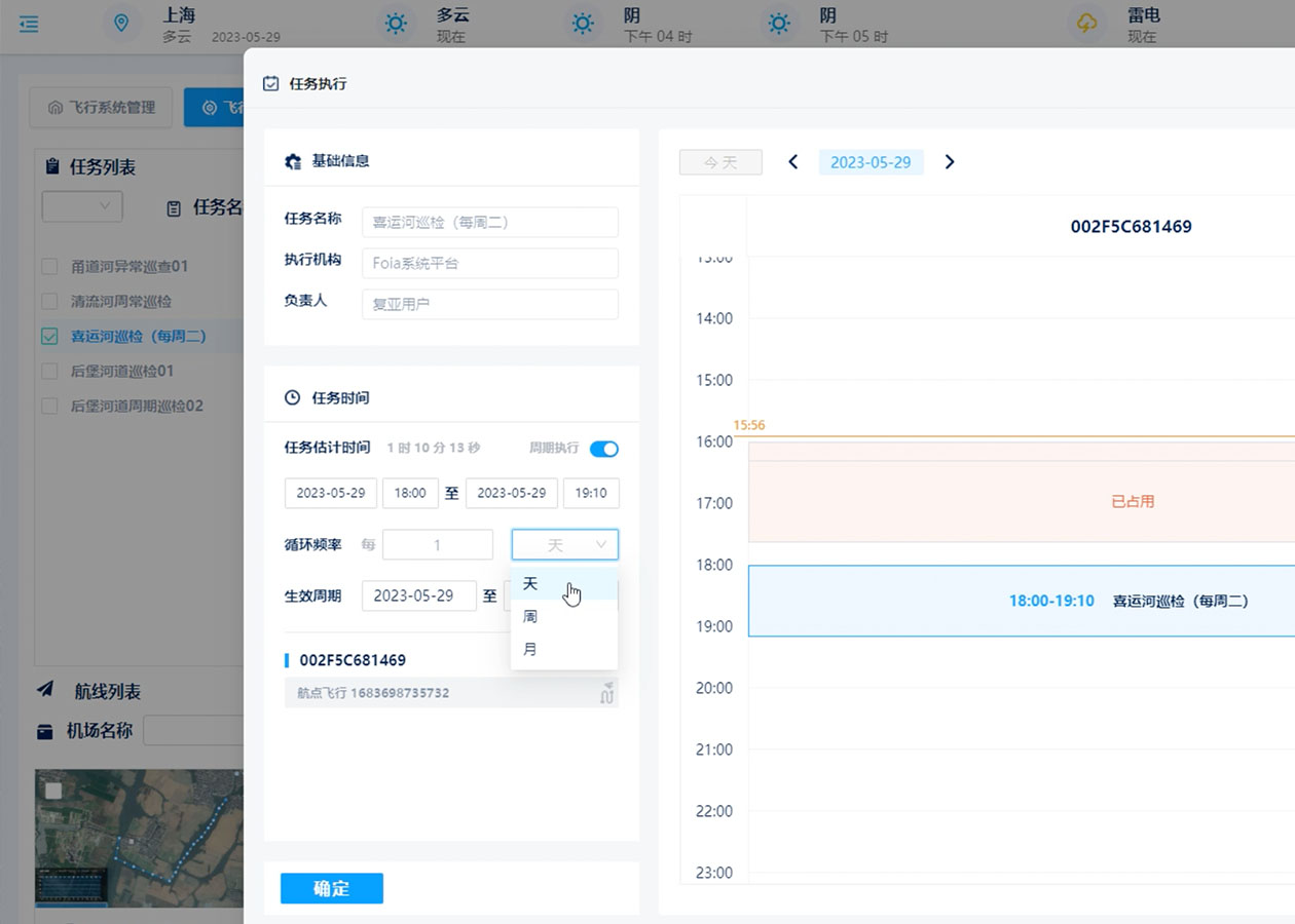 創(chuàng)建河道任務(wù),規(guī)劃河湖巡查航線,設(shè)定巡查時間,實現(xiàn)自動巡查,也可手動遠程巡查。